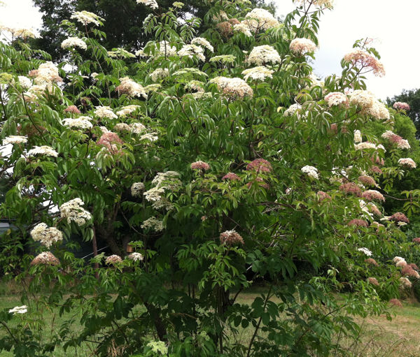 Green foliage that form large white flower-heads that develop into large fruit clusters in the summer. Elderberry has high nutritive value.